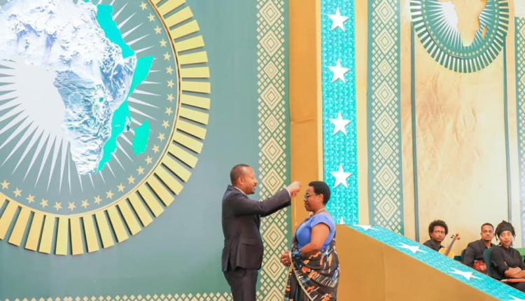 Dr. Nsanzabaganwa Monique urimo gusoza manda ye nk’Umuyobozi Wungirije wa Komisiyo ya Afurika Yunze Ubumwe (AU), yanyuzwe n’umudali yambitswe ashimirwa umusanzu yatanzwe muri uwo Muryango mu myaka ine amaze muri izo nshingano.