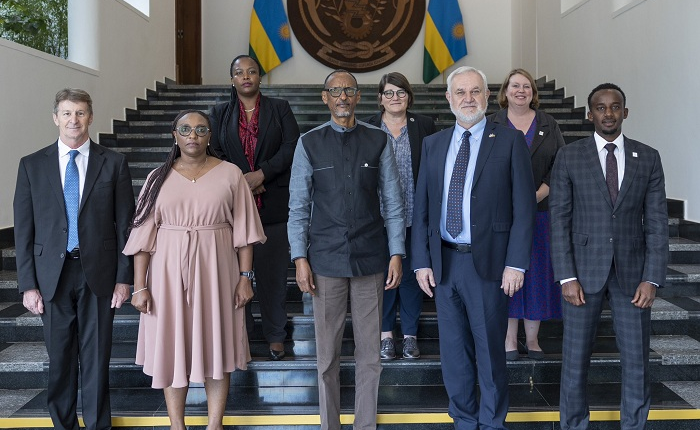 Perezida Paul Kagame ku gicamunsi cyo ku wa Kane tariki 26 Mutarama 2023, yakiriye intumwa za kaminuza ya Kent State yo muri Leta Zunze Ubumwe za Amerika, ziyobowe na Dr. Marcello Fantoni, Visi Perezida ushinzwe uburezi ku Isi.
