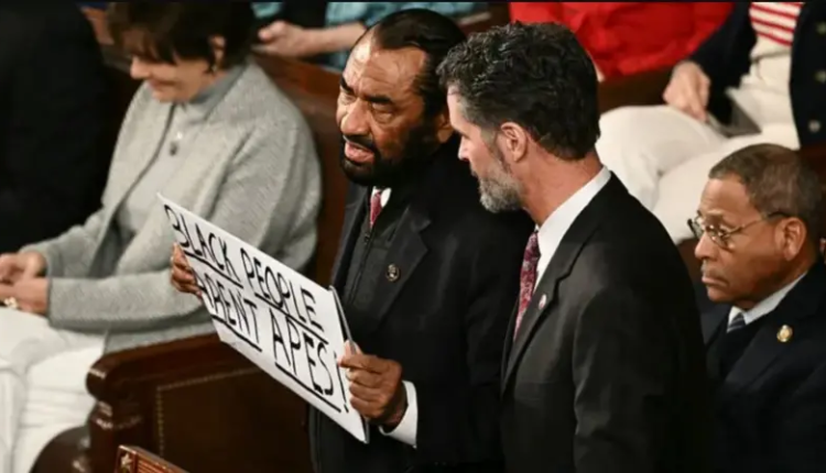 Ku mugoroba wo kuri uyu wa kabiri taliki ya 24 Gashyantare 2026 ubwo perezida wa Leta Zunze Ubumwe za Amerika Donald Trump yashyikirizaga ijambo rye mu ngoro y’inteka ishinga amategeko, abashinzwe umutekano basohoye nabi umwe mu badepite b’abirabura bo mu ishyaka ry’abademokrate Bwana Al Green nyuma y’uko uno mugabo azamuye icyapa kiriho amagambo agira ati:”Abirabura si ingagi”